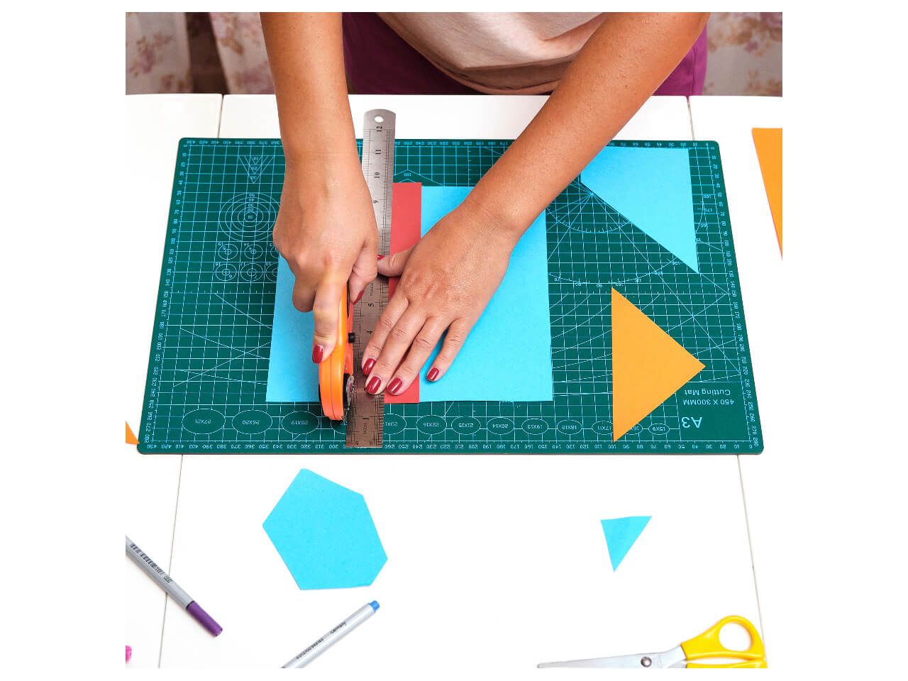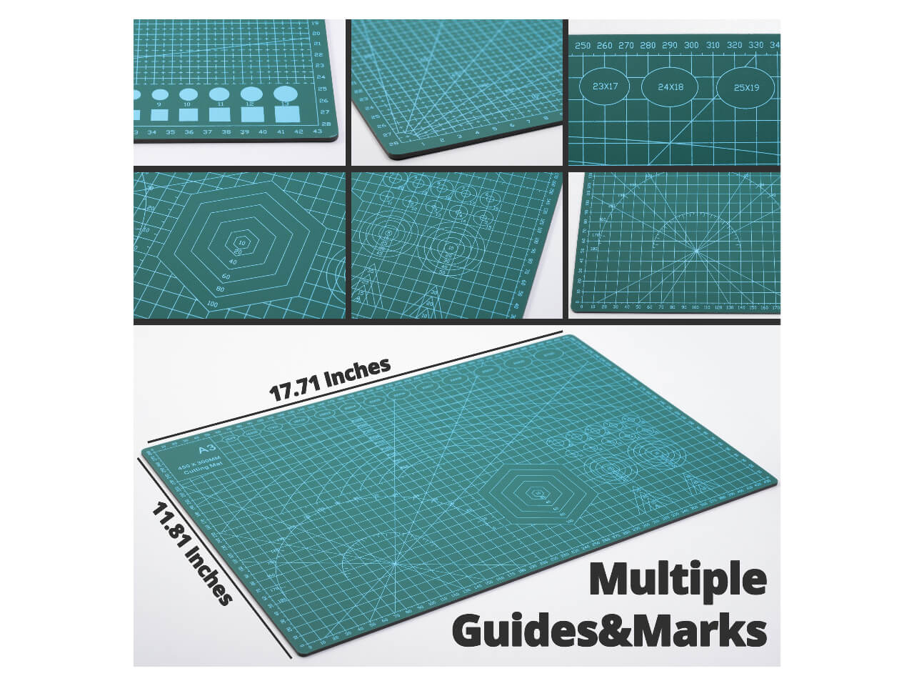 I really like this cutting mat which I use for sewing and paper crafts. The surface is smooth and although it rotates, it stays put when cutting. Of course, the reason I purchased this cutting mat it is because it rotates which makes cutting on it very convenient. I found the printed grids to be very useful for my cutting needs. I have several cutting mats and, by far, this is my favorite. I will buy another one in the future. I couldn't be happier with my Calibre Art Rotating Cutting Mat.
