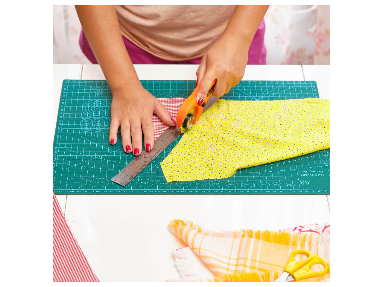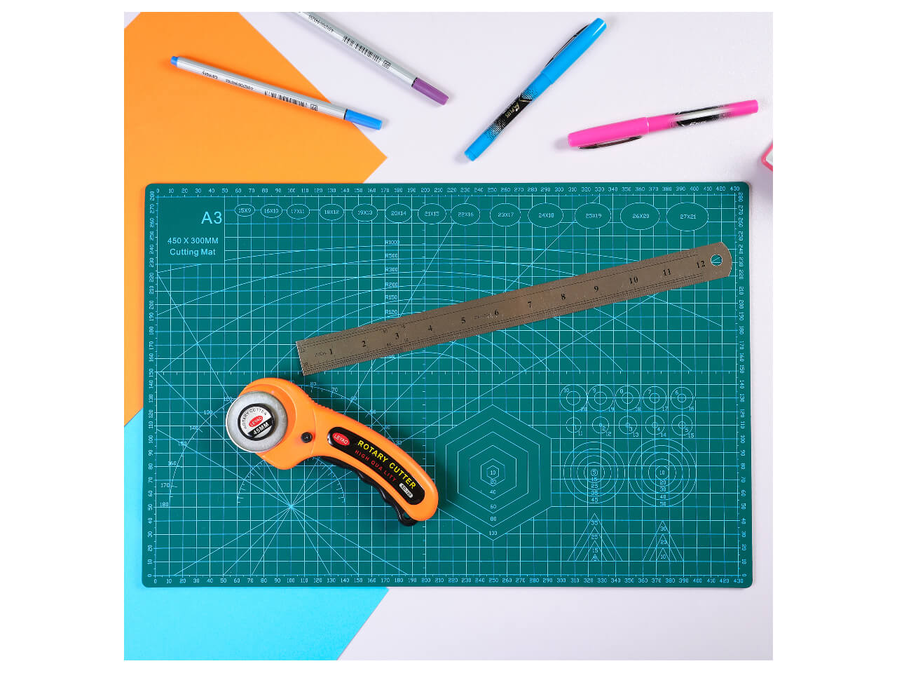 The cut mat pack by Nisally is a complete set of sewing equipment made up of a quilting cutting board, a patchwork rotary cutter, a reliable metal ruler, and a digital guide that will get your interior design knowledge up to date. Whether you're an amateur or professional crafter, you can cut your fabric squares 12x12 or any size you need while the fabric rotary cutter mat will stabilize the material. The rotary cutter allows you to maintain more control over the blade and the sturdy metal ruler ensures you get your cut lines perfect.